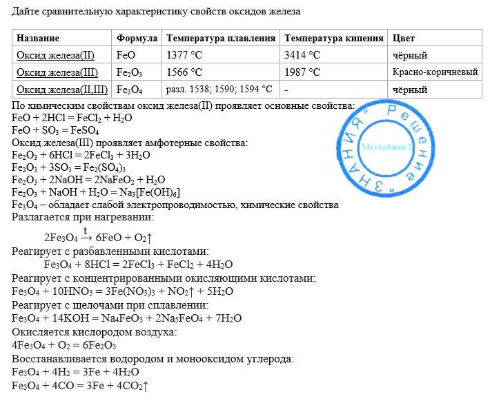 У железа существует, в основном, два оксида: FeO и Fe2O3