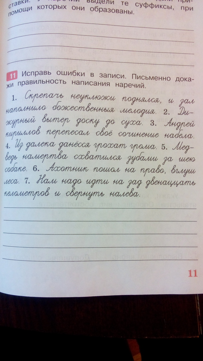 Скрипач неуклюже ( пишем Е , так как позиция безударная)поднялся, и зал наполнила мелодия, божественная мелодия. Дежурный вытер доску досуха . Андрей Кириллов переписал своё сочинение набело .Издалека донёсся грохот грома. Медведь намертво схватился зубами за шею собаки . Охотник пошёл направо , в глушь леса. Нам надо идти назад двенадцать километров и свернуть налево.