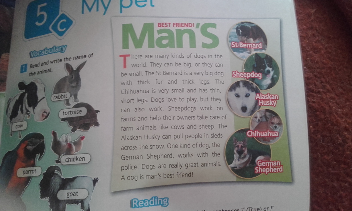 В мире много пород собак. Они могут быть большими или маленькими. Сенбернар - это очень большая собака с густой шерстью и мощными лапами. Чихуахуа - маленькая собака с тонкими и короткими лапами. Собаки любят играть, но они также могут работать. Овчарки работают на фермах и помогают своим хозяевам заботится о животных, таких как коровы и овцы. Хаски могут возить людей в санях по снегу. Одна порода собак, Немецкая овчарка, работает с полицией. Собаки по истине замечательные животные. Собаки -лучшие друзья человека!