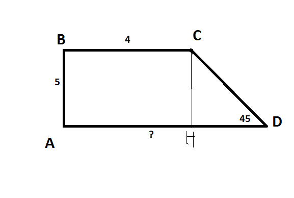 Треугольник CHD равносторонний т.к. углы при основании равны(HCD=CDH=45), следовательно HD=5см