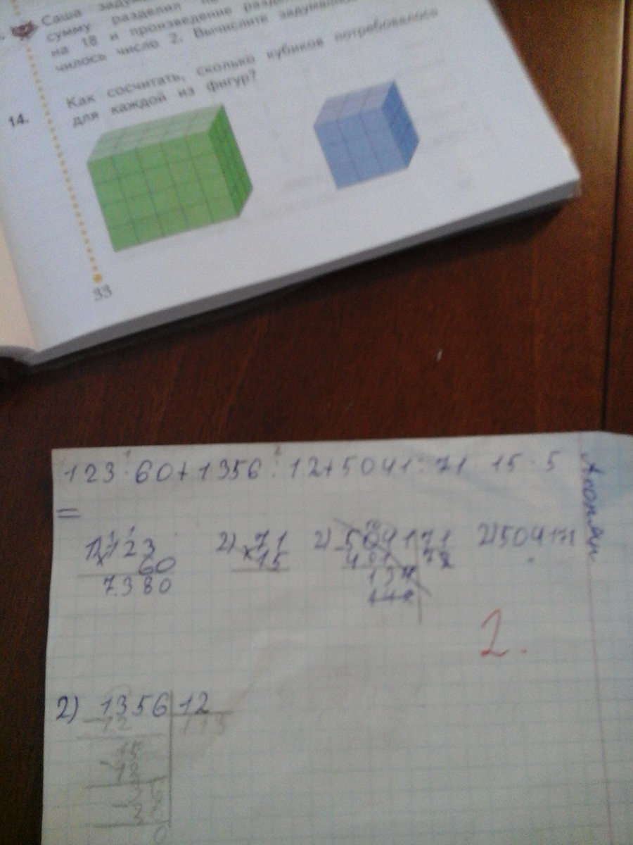 123*60=ноль на три ноль шесть на три 18 восемь пишем один в уме два на шесть 12плюс ещё один 13три пишем один в уме один на шесть шесть плюс один 7 ответ 7380