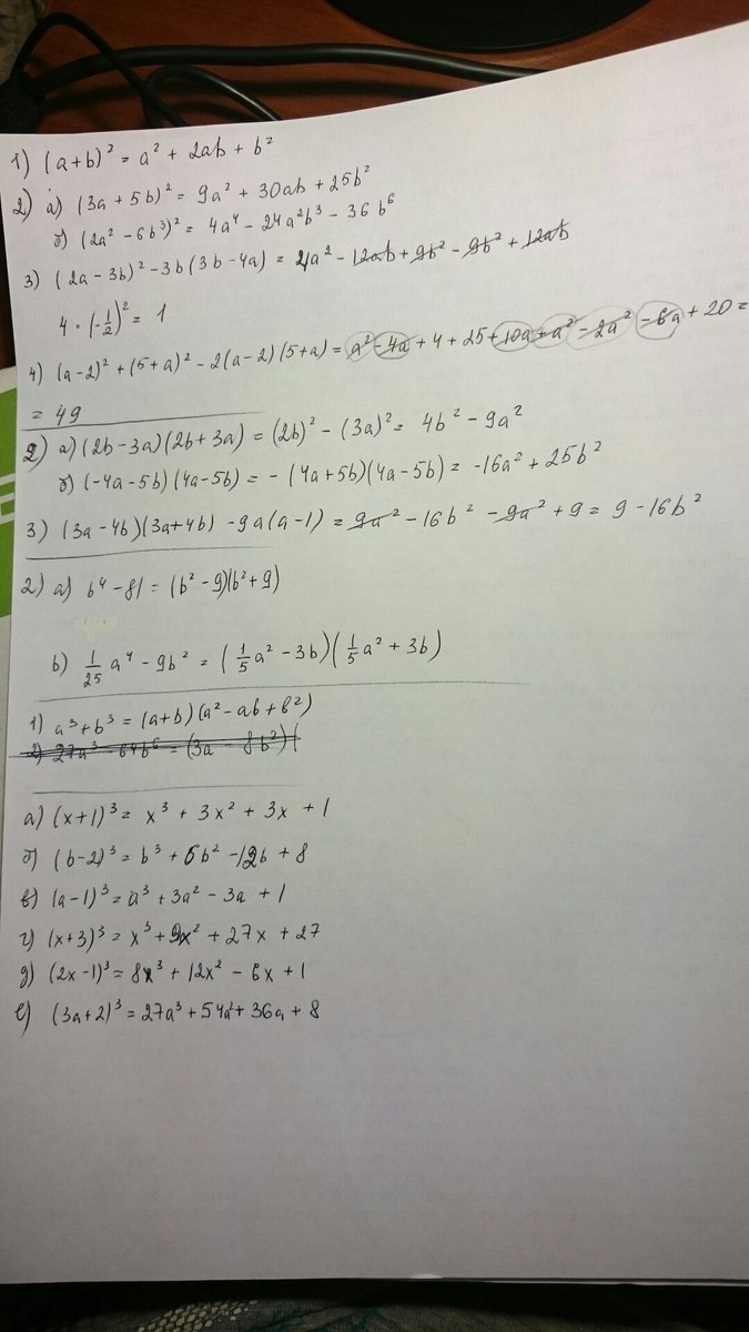 1)Сумма кубов двух переменных равна произведению суммы первой и второй переменной на неполный квадрат разности этих переменных.