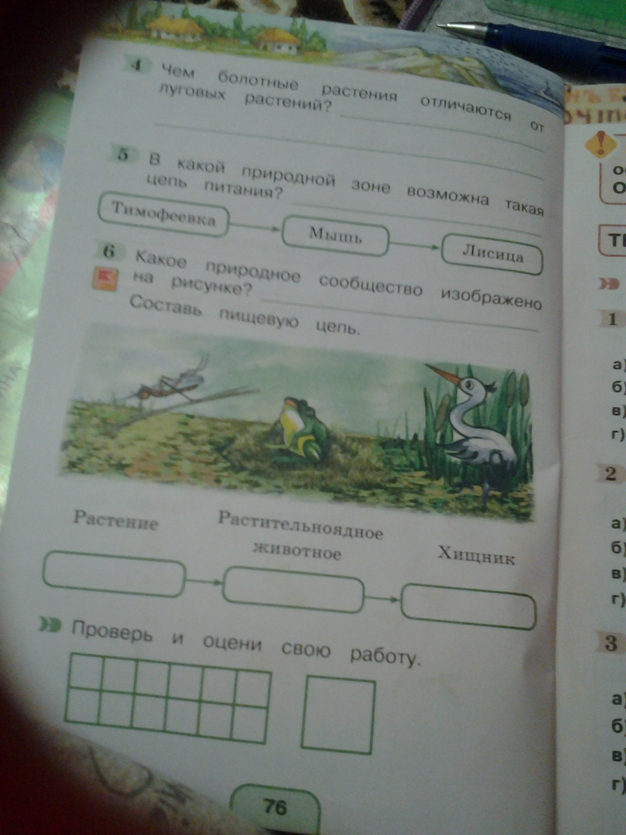 на болоте. а пищевая система лягушка съест комара,а лягушку съест аист