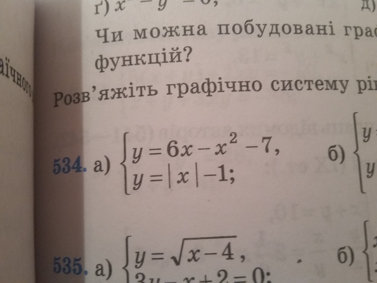 Сначала рисуешь график 1 ур-я,потом график 2 , и смотришь где они пересекаются(1-порабола,2-галка