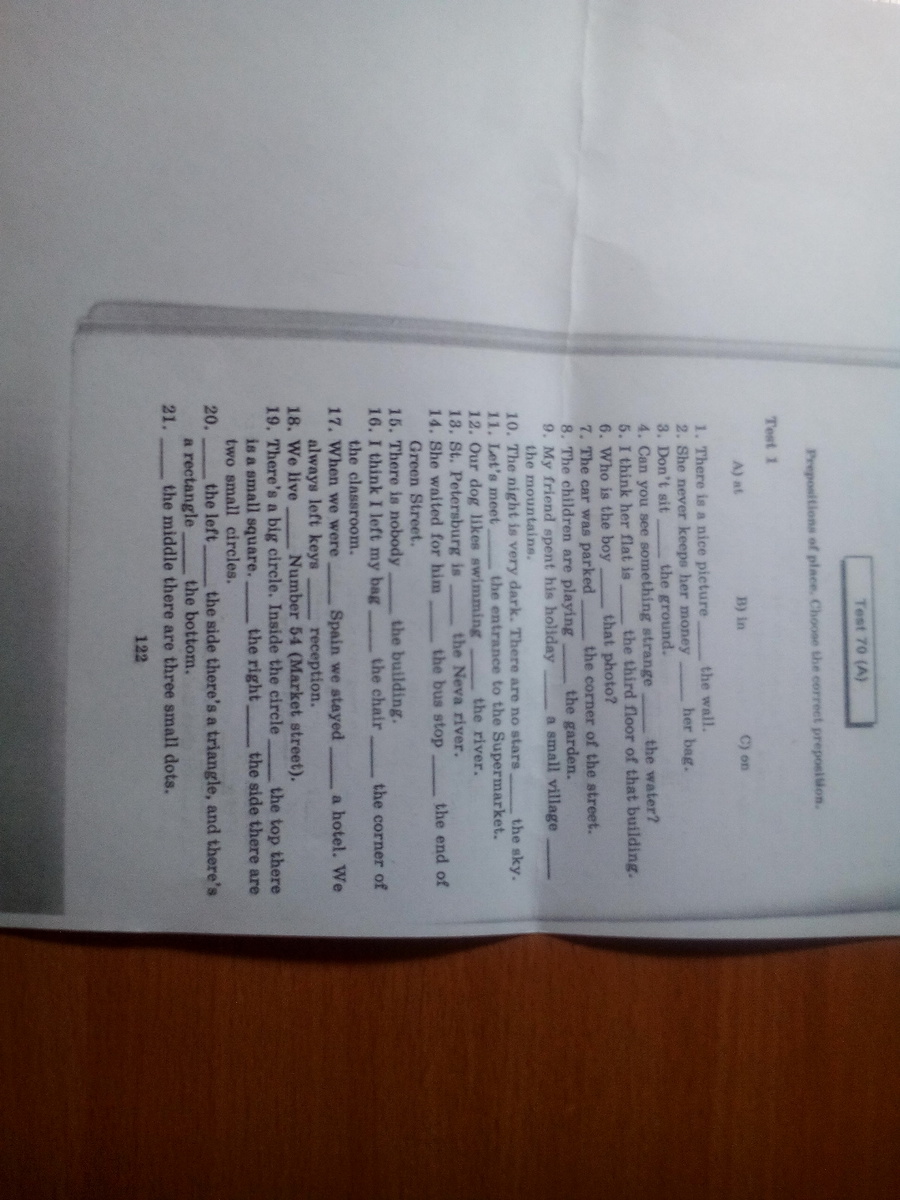 at , at , in , on ,at ,on ,on ,in ,on ,in ,at ,in, in ,at ,on