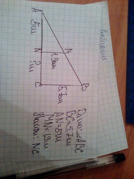Треугольники АМN и АВС подобны. Пусть NC=х, тогда составим пропорцию:
