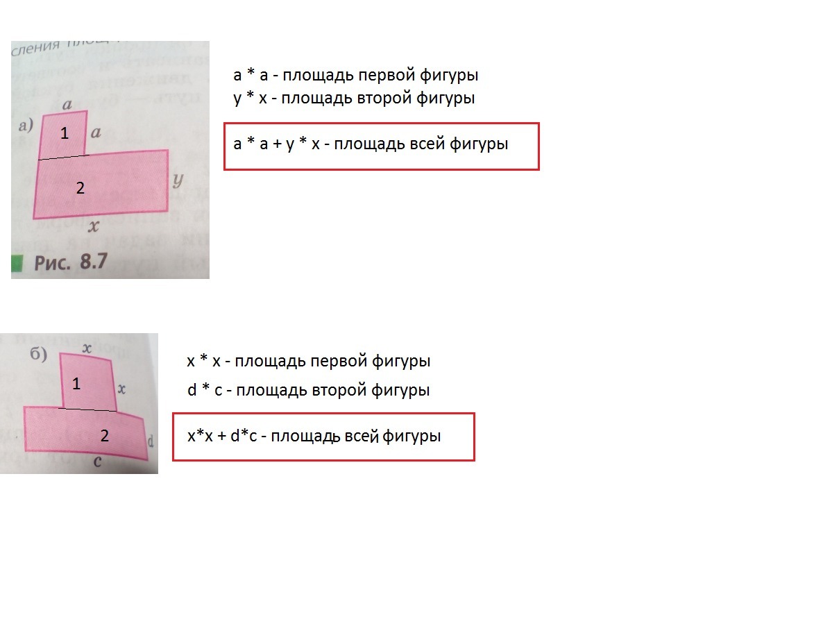 Составьте формулы для вычисления площади фигуры ( рис.8.7, а,б).
