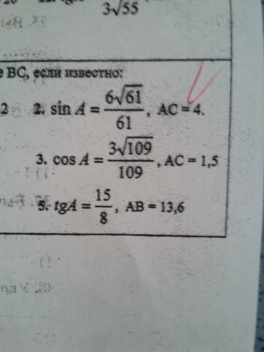 BC = AB*sin A = 13,6*15/17 = 0,8*17*15/17 = 0.8*15 = 12