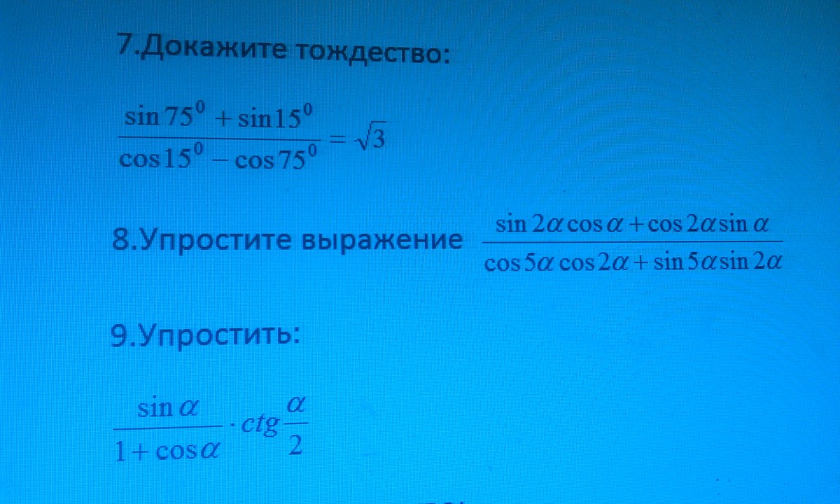 просто примени в восьмом и девятом заданиях формулы половинного аргумента, двойного аргумента, основные тригонометрические тождества, подставь и все