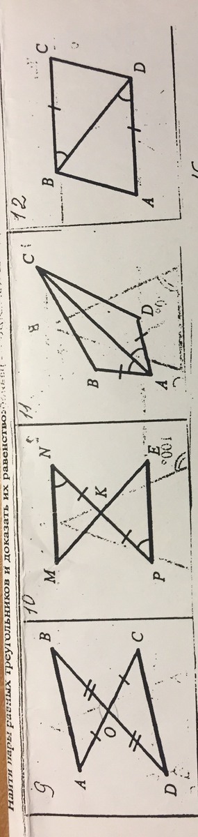 10)равны (по внутренним разносторонним углам и равной стороне )