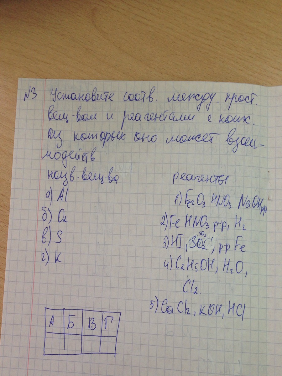 Взаимодействие простых веществ 1а,3б,2в,4г
