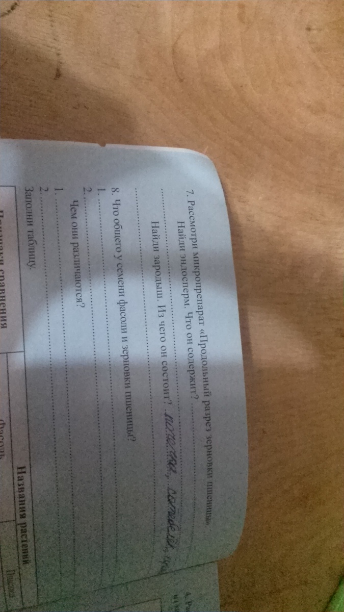 У фасоли нет эндосперма,а у пшеницы есть эндосперм