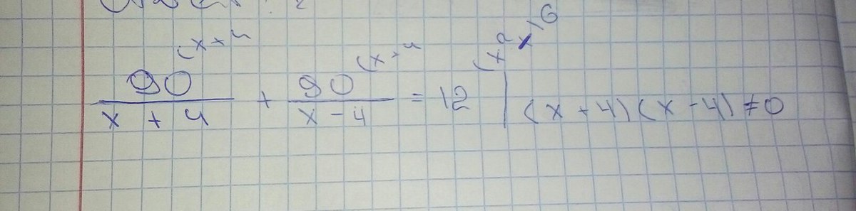 90/(x+4) +90/(x-4) =12 ; * * * ОДЗ: x ≠ ± 4 .