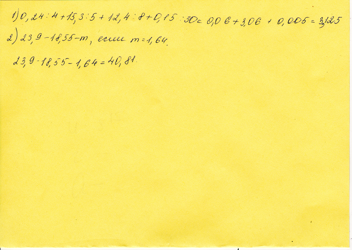 23.9 - 18.55 - m = 5.35 - 1.64 = 3.71 Если нужно в столбик, просто подставь числа