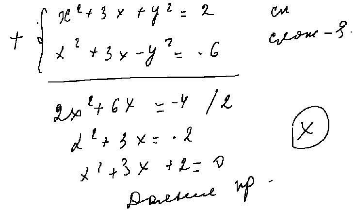 х²+3х+у²=2 (-1)²+3(-1)+у²=2 1-3+у²-2=0 у²=4 , У1=2 , У1=-2