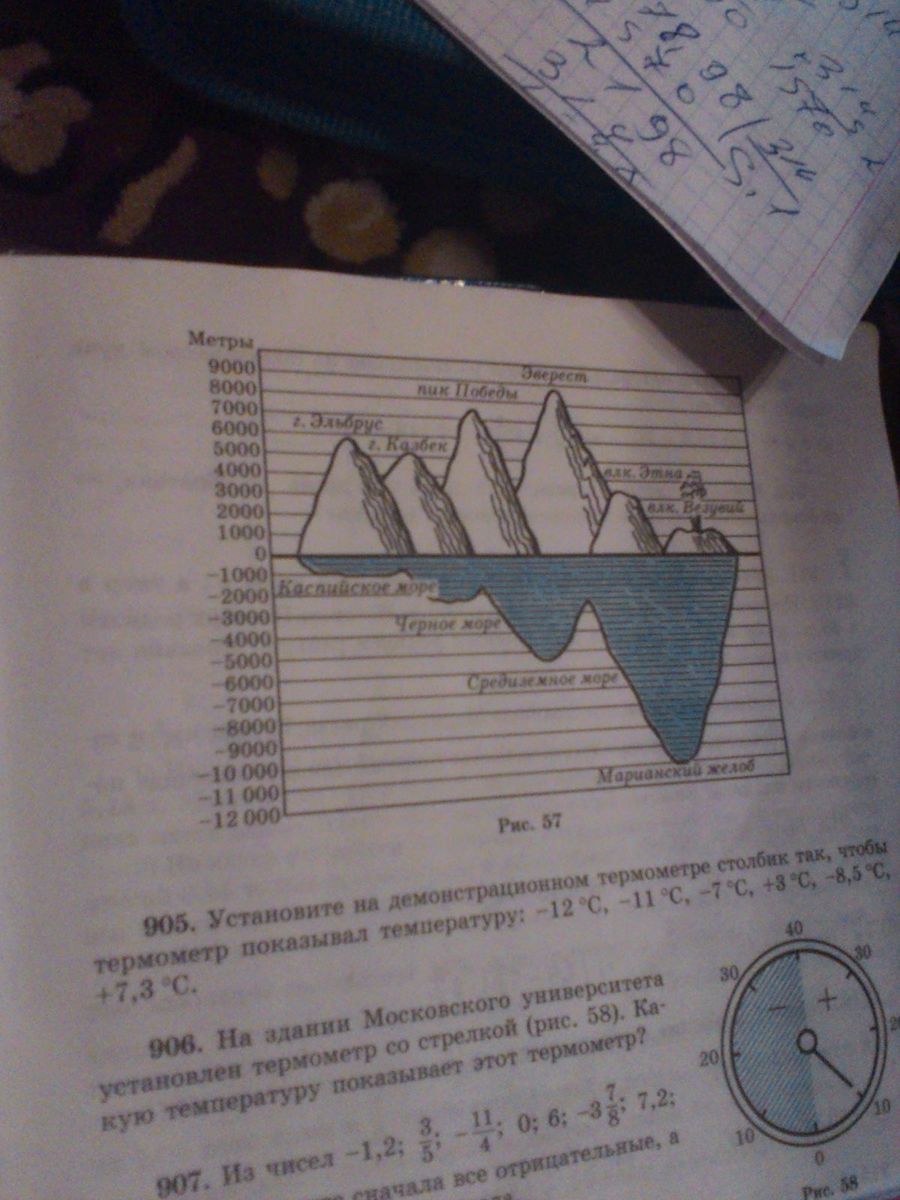 Найдите на шкале(рис.57) высоты гор и глубин морей и океанов.
