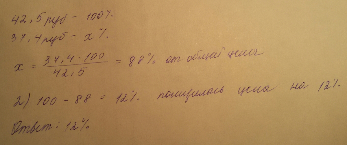 42, 5 - 37,4 = 5,1 руб- на 5,1р понизилась цена