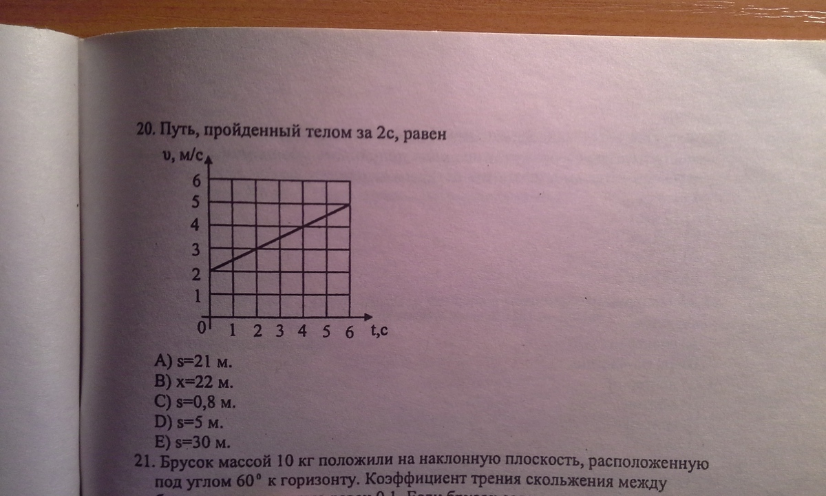 Начальная скорость тела 2м/с, за 2 секунды он набирает скорость 3м/с