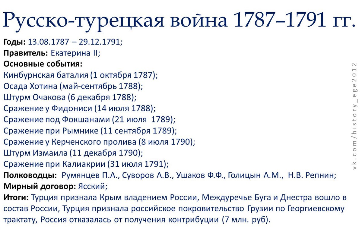 Помогите пожалуйста сделать таблицу по истории на тему: Русско-турецкая война (1787-1791г.)