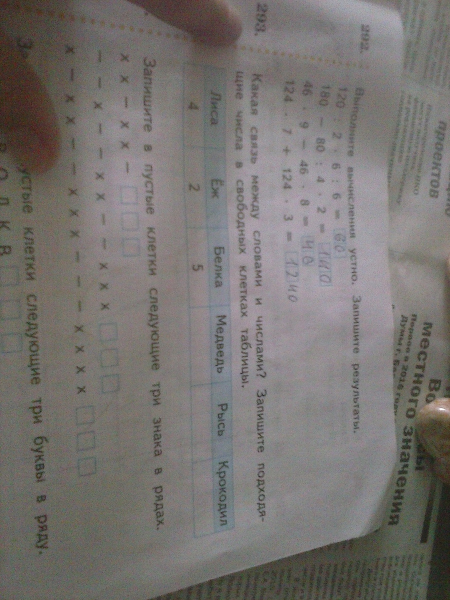 какая связь между словами и числами? Запишите подходящие числа в саободных клетках таблицы