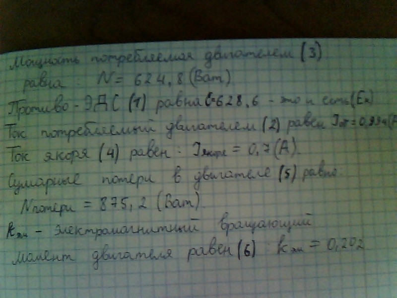 Для двигателя постоянного тока серии 2П параллельного возбуждения, технические данные которого приведены ниже, определить:1) потребляемую двигателем мощность; 2) суммарные потери мощности в двигателе; 3) потребляемый двигателем ток; 4) возбуждения и ток якоря; 5) противо-ЭДС; 6) электромагнитный вращающий момент двигателя, полезный момент на валу и момент холостого хода