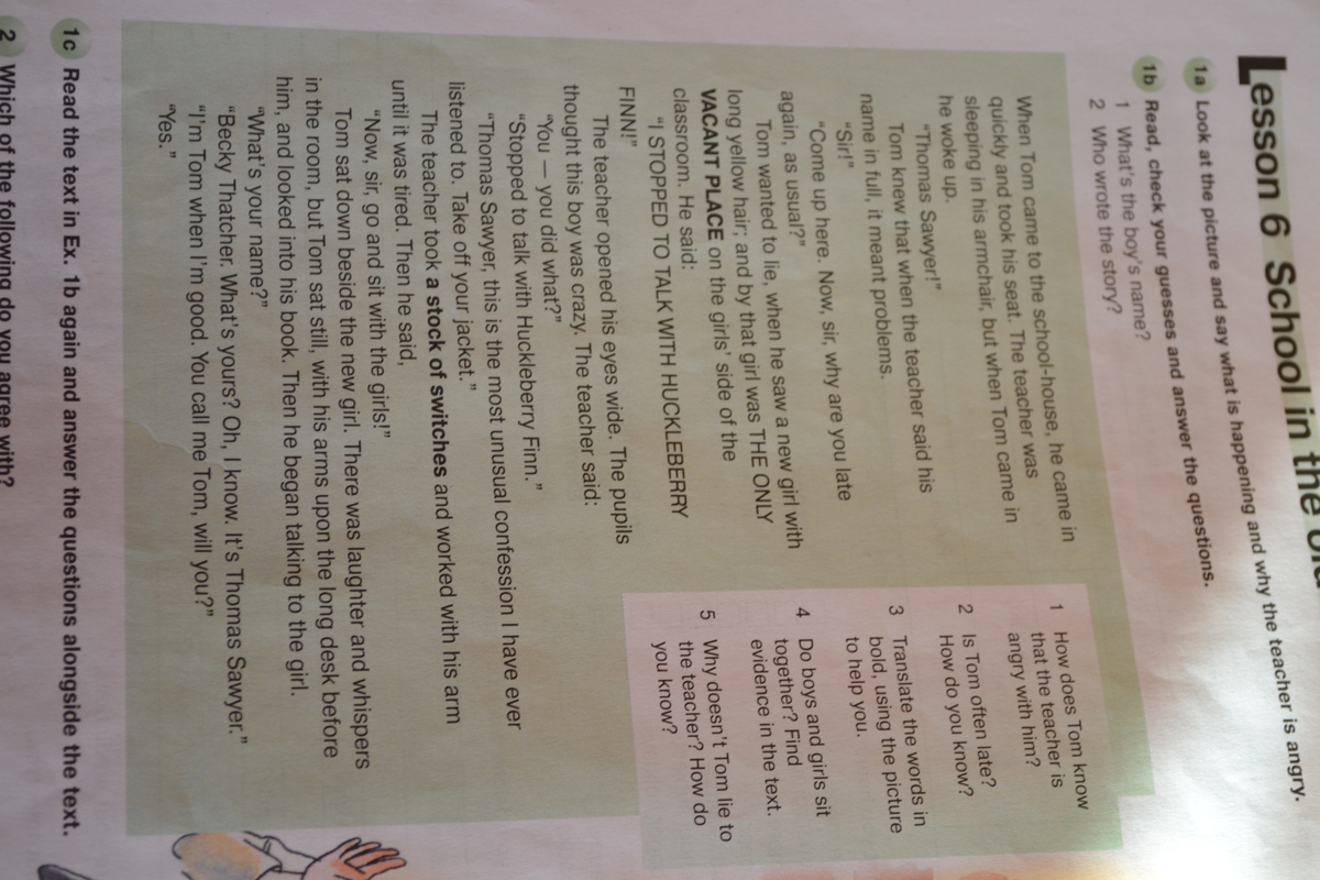 Том сел рядом с новой девочкой. В классе слышались смешки и шепот, но том сидел прямо, с руками на парте и смотрел в книгу. Потом он заговорил с новой девочкой.