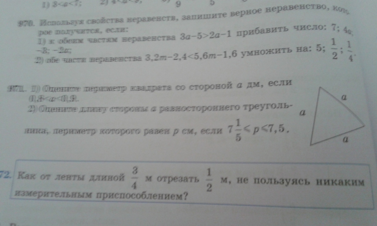 7 1/5=7,2 Имеем 7,2<p<7,5 т.к. периметр эта сумма всех сторон то неравентво делим на 3 (три равные стороны у треугольника)7,2 : 3 <p:3 <7,5 : 32,4 < а <2,5