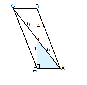 Треугольник АОД - прямоугольный, гипотенуза АО=5 см, катет ОД=4 см.