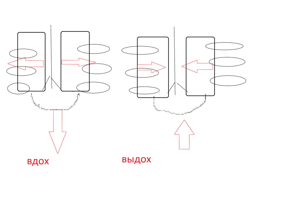 Состояние лёгких и объем грудной клетки при вздохе и выдохе