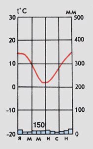 Помогите. Работа по климатической диаграмме. 1. Какое количество осадков характерно для данного типа климата? Каков режим осадков в течении года?