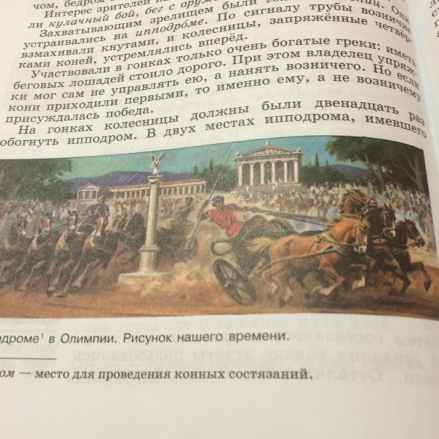 Опишите по рисунку: на ипподроме. Конские бега в Олимпии. В чём состояли состязания? Как определяли победителя?