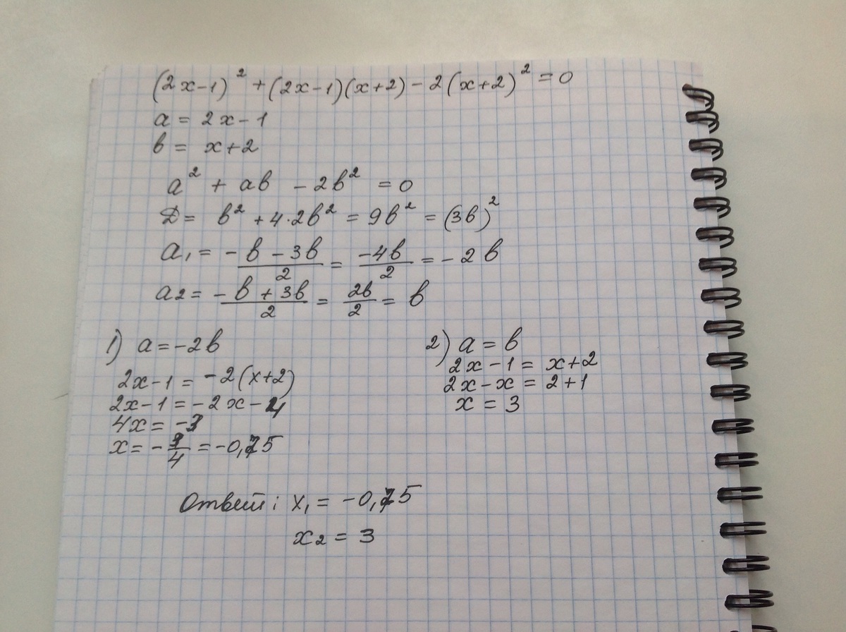 (2х-1)в квадрате + (2х-1)(х+2) -2(х+2) в квадрате=0
