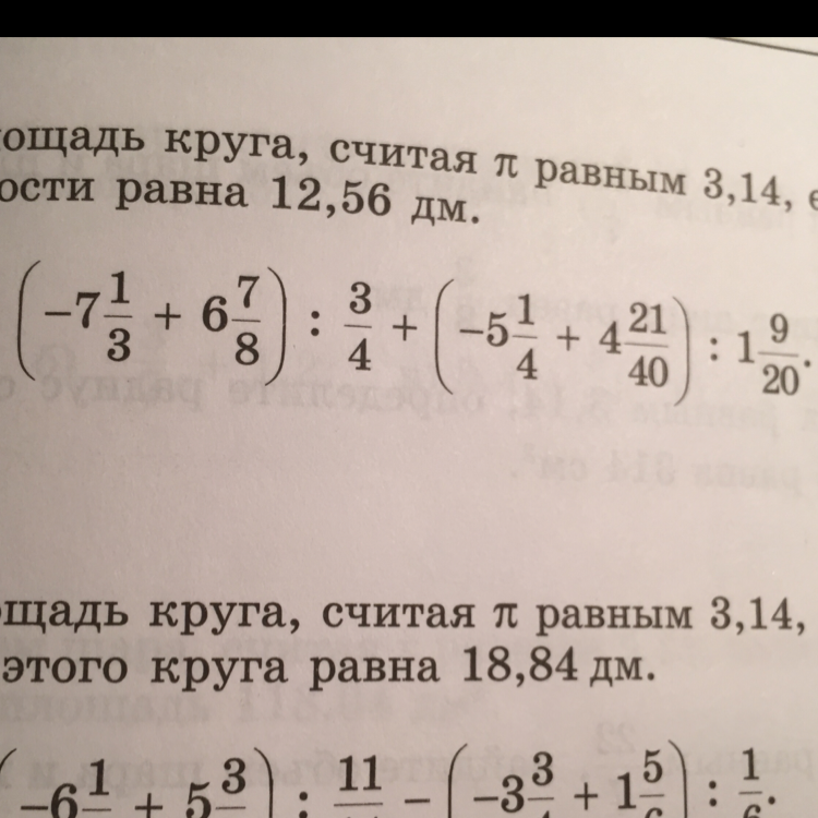 ( - 7 1/3 + 6 7/8 ) : 3/4 + (- 5 1/4 + 4 21/40 ) : 1 9/20 =
