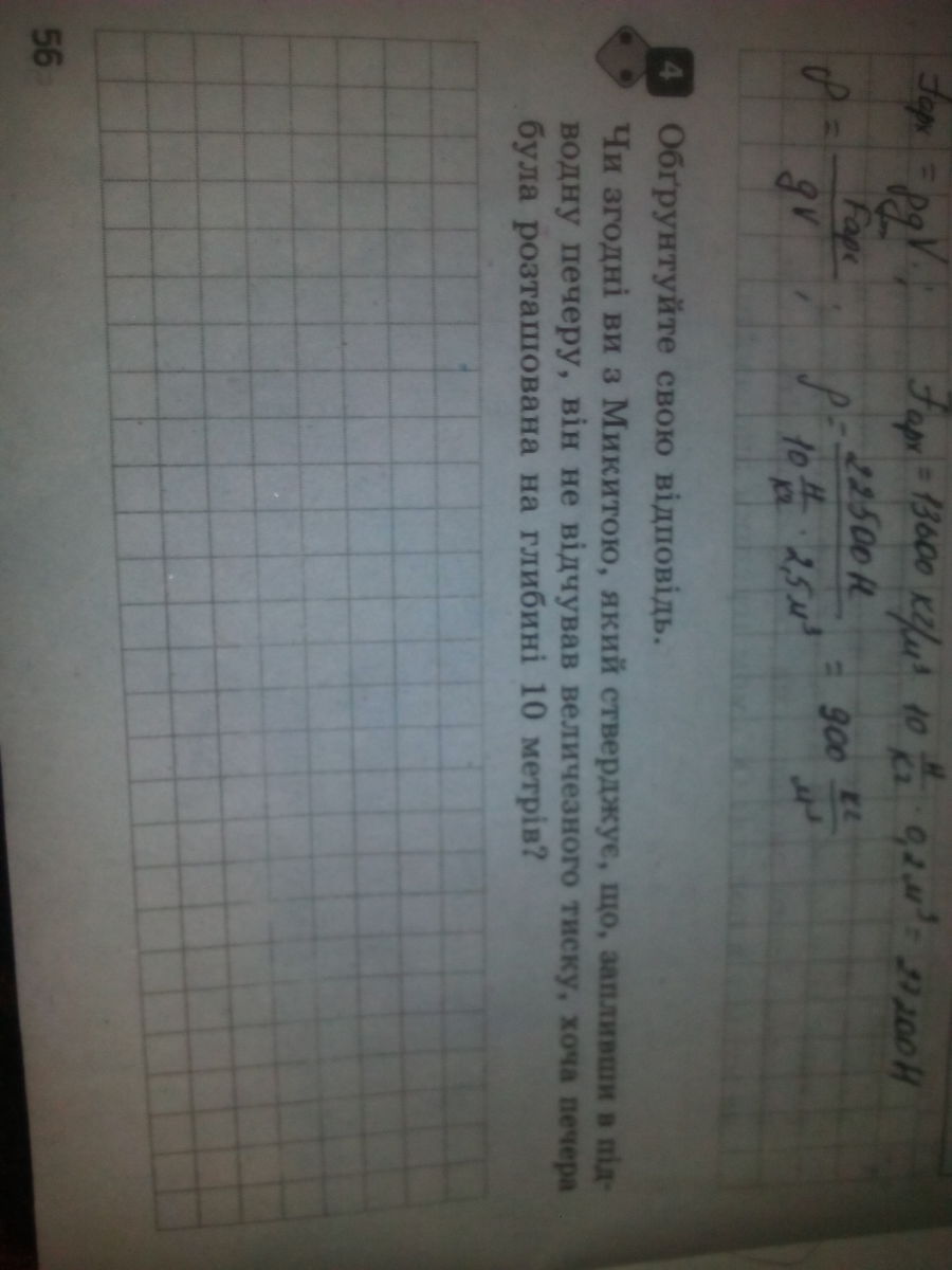 Тиск повітря у печері зрівноважує тиск води висотою h=10м. p=ρgh. p=1000*10*10=10^5 Па. Цей тиск є нормальним атмосферним тиском, тому Микола має рацію.