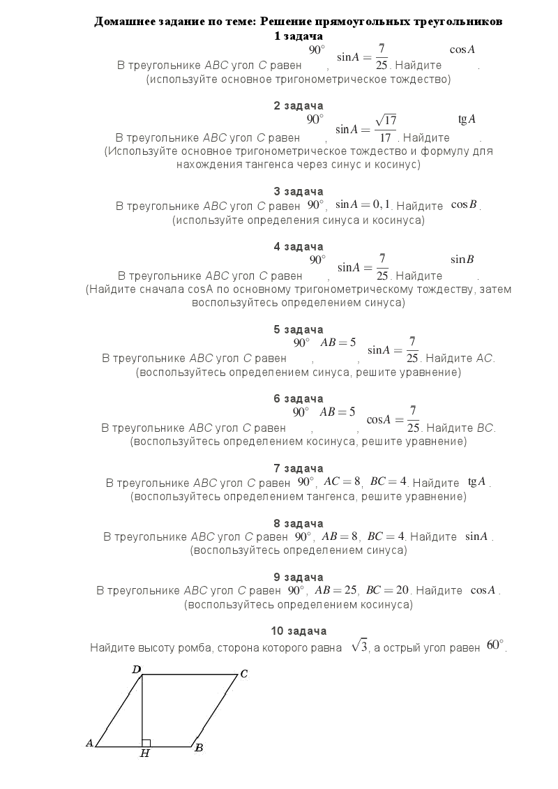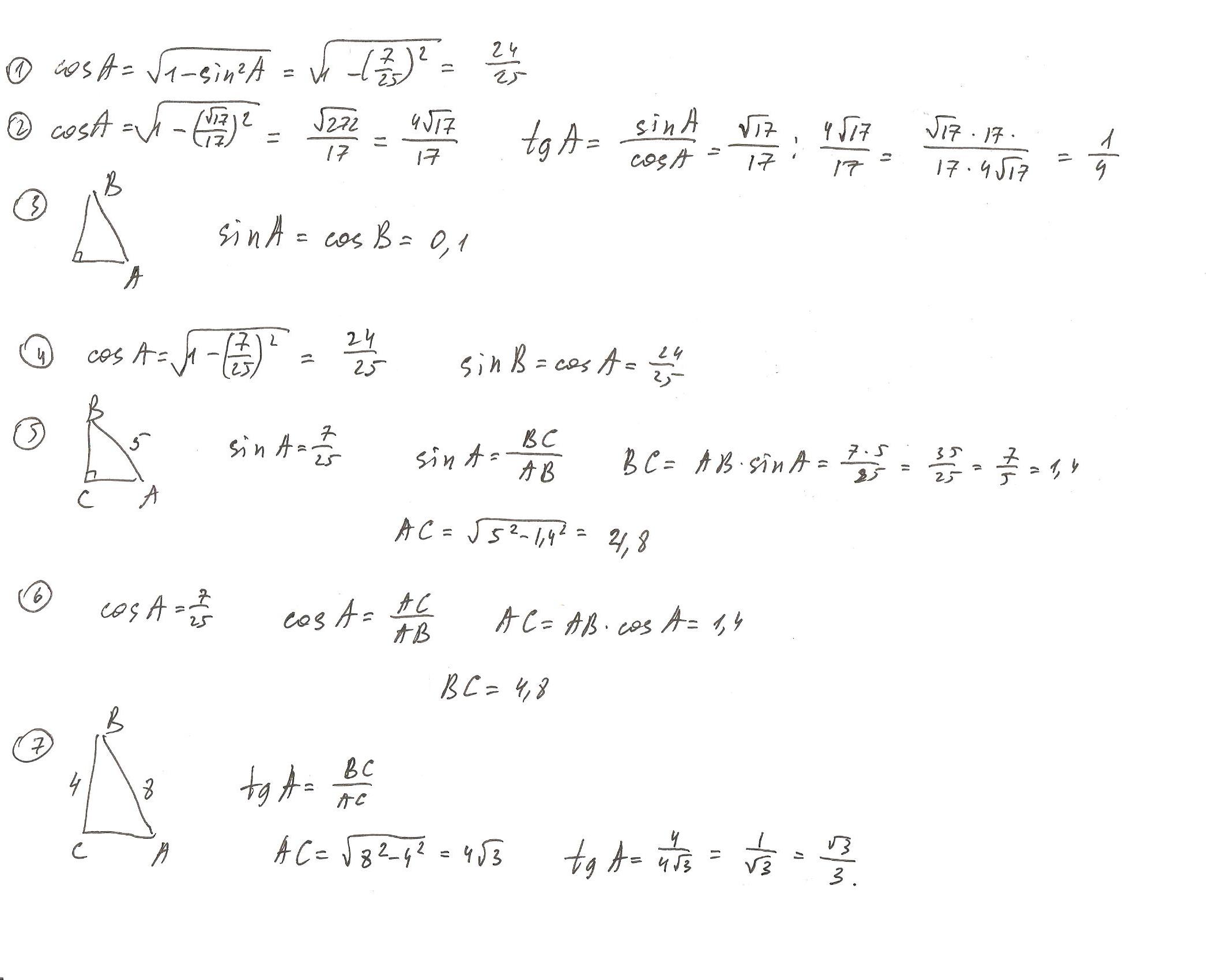 tg A = sin A/cos A=корень из 17/17 / 4/корень из 17