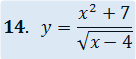 y = (x * x + 7) / (Math.Sqrt(x - 4));
