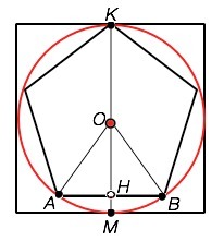 АВ- сторона пятиугольника., О - центр описанной окружности.