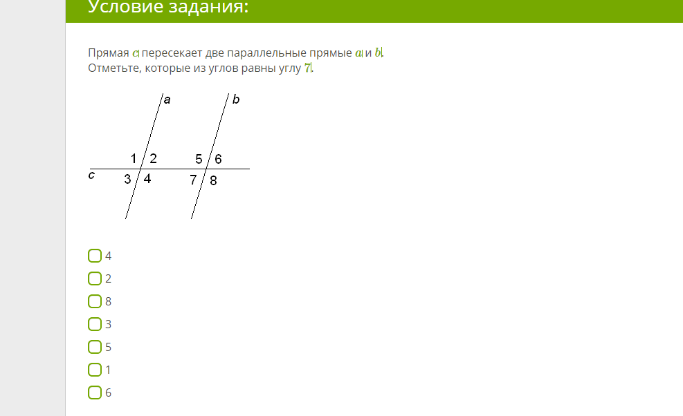 1)угол 3=7, т.к. прямые a и b параллельны получается углы соответственные.