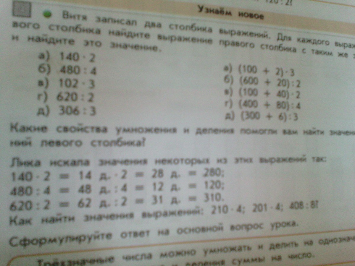 Витя записал два столбика выражений.Для каждого выражения левого столбика найдите выражения правого столбика с таким же значением и найдите это значения