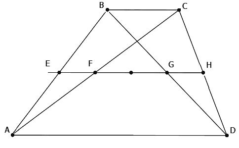 диагонали трапеции делят среднию линию на три отрезка,один из которых равен сумме двух других.Тогда отношение длин оснований равно