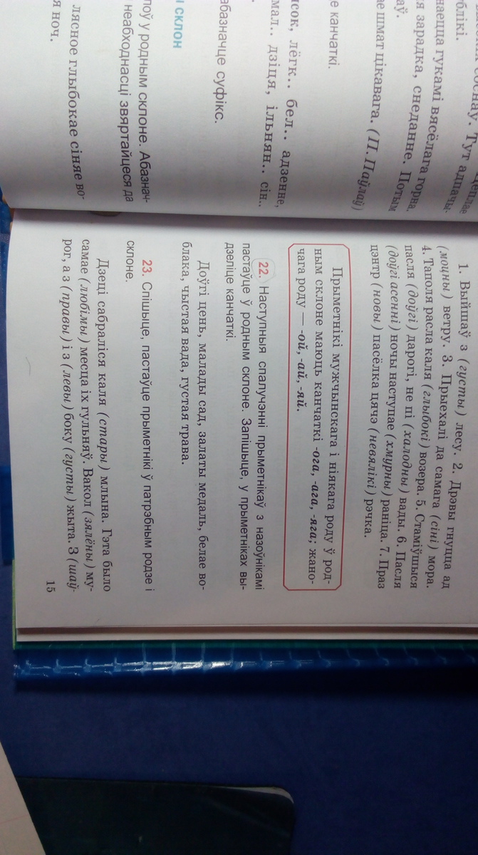 Доуг(ага) ценю, малад(ога) сада, залат(ой) медали, бел(ага) воблака, чыст(ай) вады, густ(ой) травы.