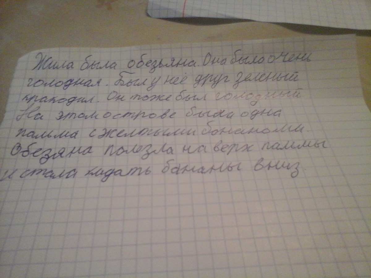 Live was a monkey. It was very hungry. Was by it friend - a green crocodile. On also was hungry. On the this island was one palm with yollow bananas. A monkey climbed