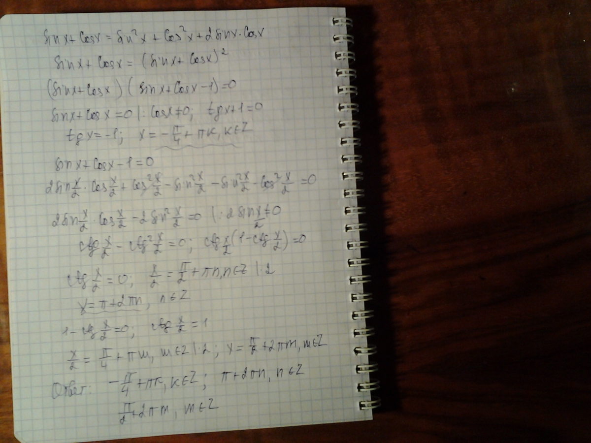 sinx+cosx=sin^2x+cos^2x+2sinx*cosx