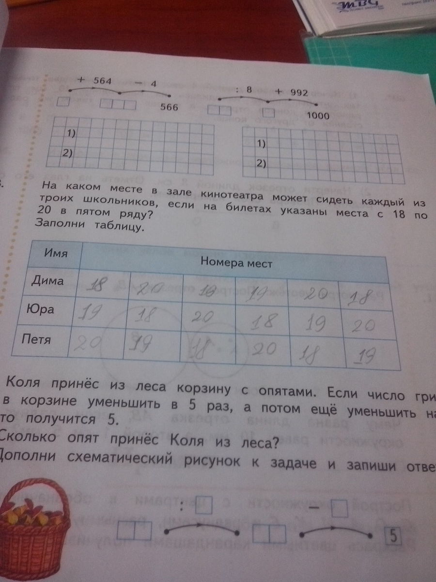 На коком месте в зале кинотеатра может сидеть каждый из троих школьников, если на билетах указаны места с 18 по 20 в пятом ряду?