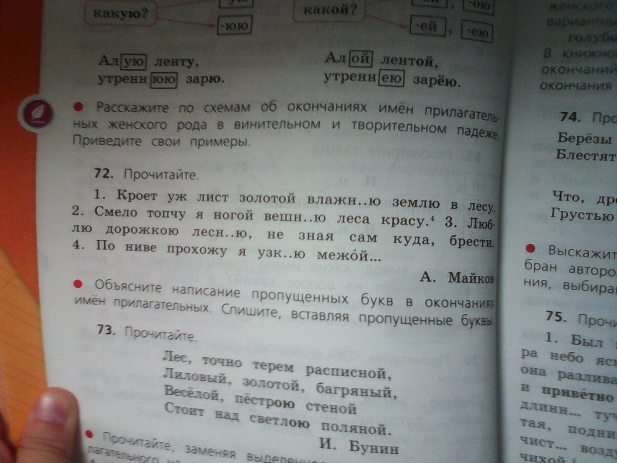 1) Кроет уж лист золотой влажную(какую?) землю в лесу.