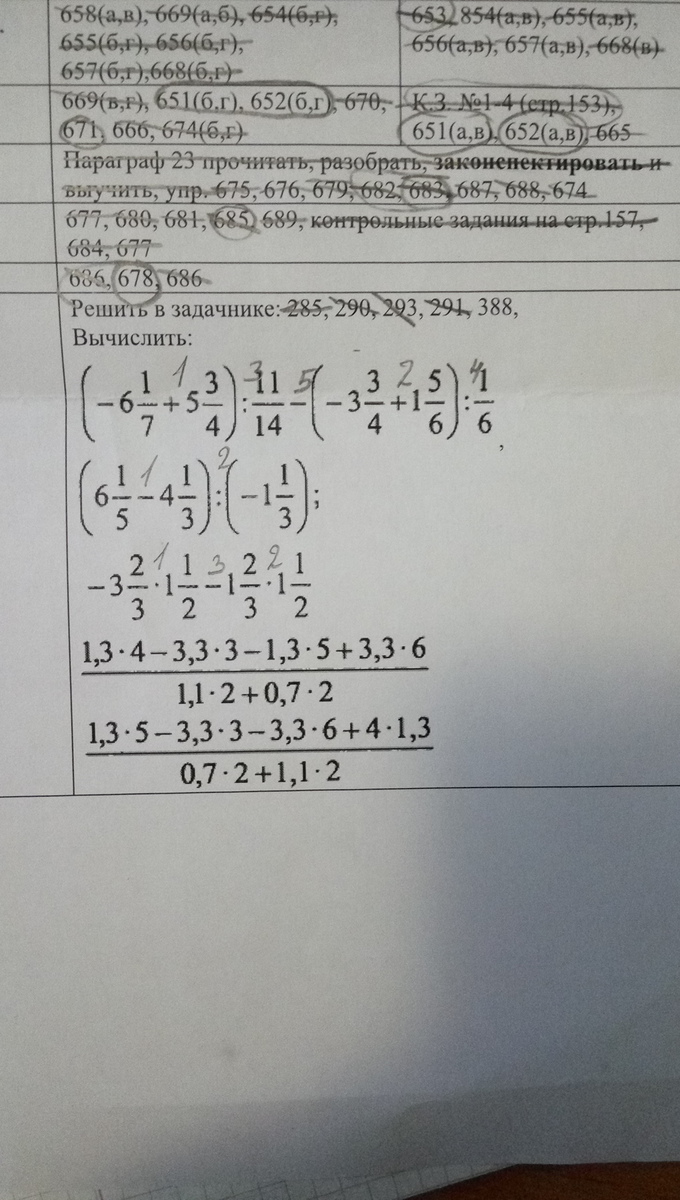 1)-6 1/7 + 5 3/4=- 43/7 + 23/4= - 172/28 + 161/28= -10/28= -5/14