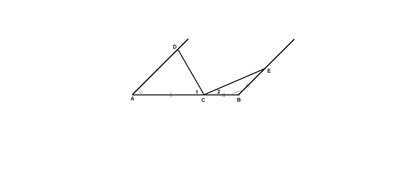 На отрезке АВ взята точка С. Через точки А и В проведены по одну сторону от АВ параллельные лучи. На них отложены отрезки АД=АС и ВЕ=ВС. Точка С соединена отрезками прямых с точками Д и Е. Докажите, что ДС перпендикулярно СЕ
