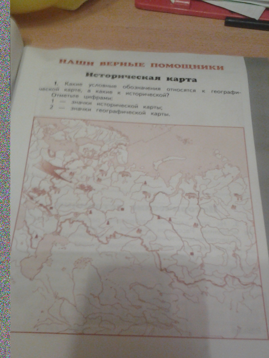 черный квадратик - уголь, черная пирамидка с отрезанной вершиной нефть, животные, круг с молнией - электростанция - это все географическая карта. А красные стрелки - это направление войск, а остальное плохо видно, но это скорее всего относится к исторической карте.