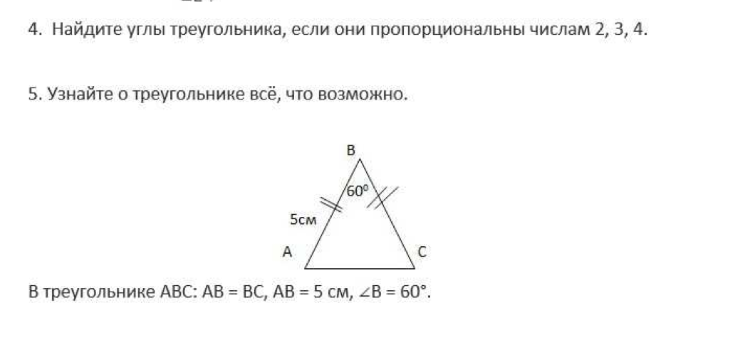 В 4 задании треугольник обычный можно и самим нарисовать. Пусть одна часть х. Тогда: