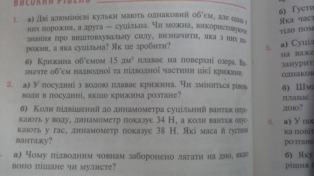 1. а) Да, можно. Fa=ro g V. А сила которая будет тянуть шарик вниз F=mg. Выталкивающая будет одинаковая, но тянущая вниз у цельного шарика больше - значит он пойдет ко дну (или будет ниже/быстрее опускаться относительно полого шарика).